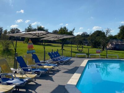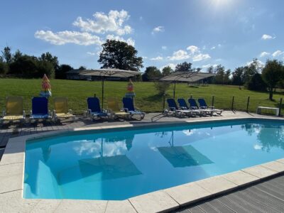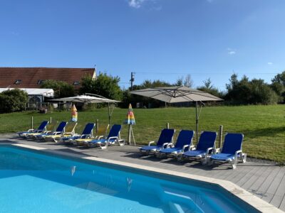 Naast het zwembad staan lekkere ligstoelen en zijn enkele parasols geplaatst. Een heerlijke plek om te genieten.