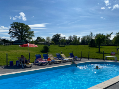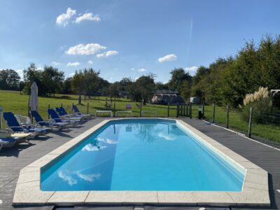 Het zwembad van 4 x 11 meter is verwarmd (26 graden of meer) en heeft een geleidelijk aflopende vloer. Het ondiepe gedeelte begint als peuterbad met een diepte van 40 cm en loopt af naar circa 1.80 meter. Hierdoor is het van klein tot groot mogelijk om van het zwembad te genieten.